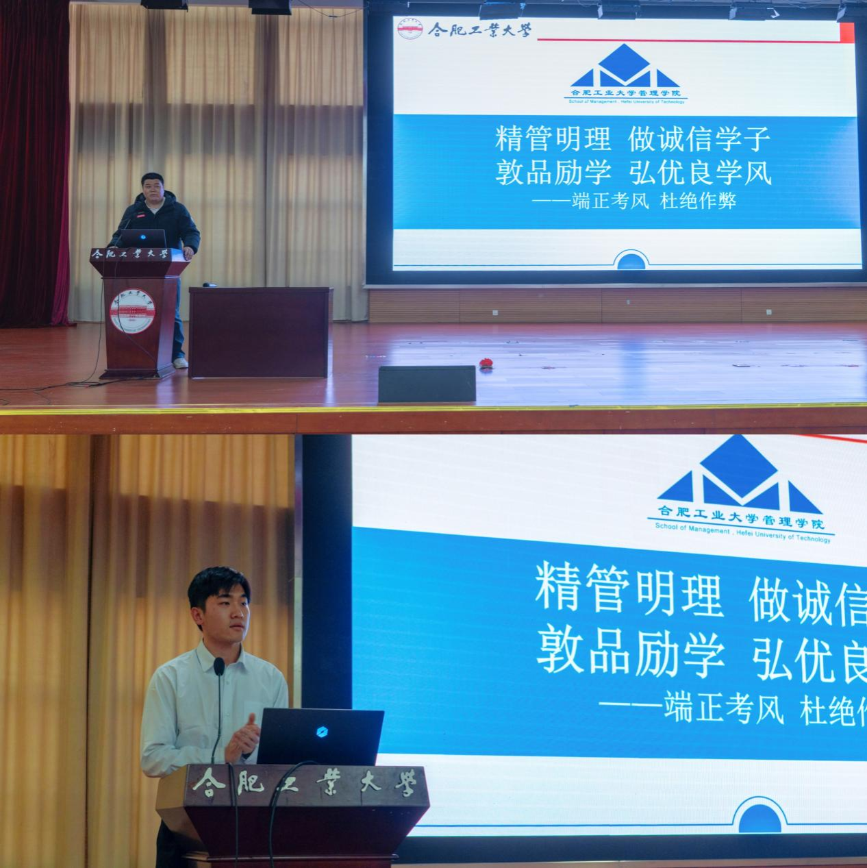 为强化学生诚信应考意识,明确考试纪律红线,营造公平公正的考试氛围,1月15日下午,管理学院在科教楼二楼报告厅召开2025级新生“端正考风,诚信考试”考风考纪教育大会。学院辅导员老师和2025级全体同学参会。