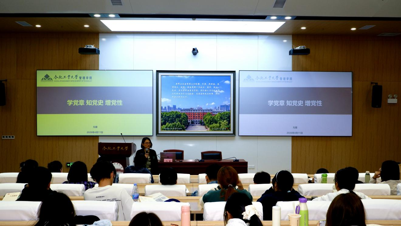 4月11日傍晚,管理学院第75期大学生入党积极分子班第四次集中授课在屯溪路校区管理学院会议楼第二报告厅举行。学院党委副书记凡菊老师主讲,培训班全体学员参加学习。