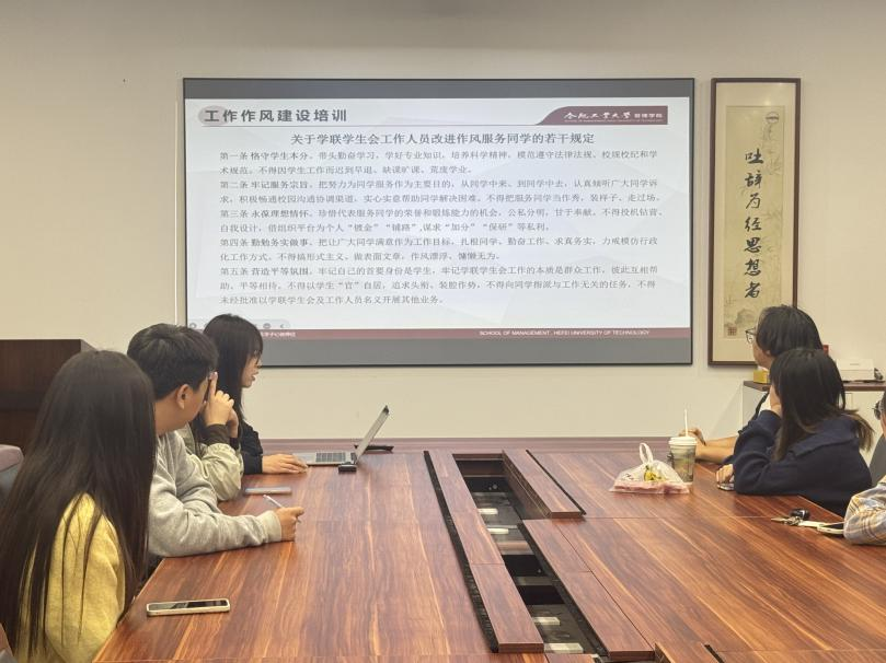 2025年10月16日晚,管理学院研究生会在工程管理与智能制造研究中心725会议室开展作风建设培训会。本次活动旨在强化团队协作与作风建设,全面提升研会服务效能。